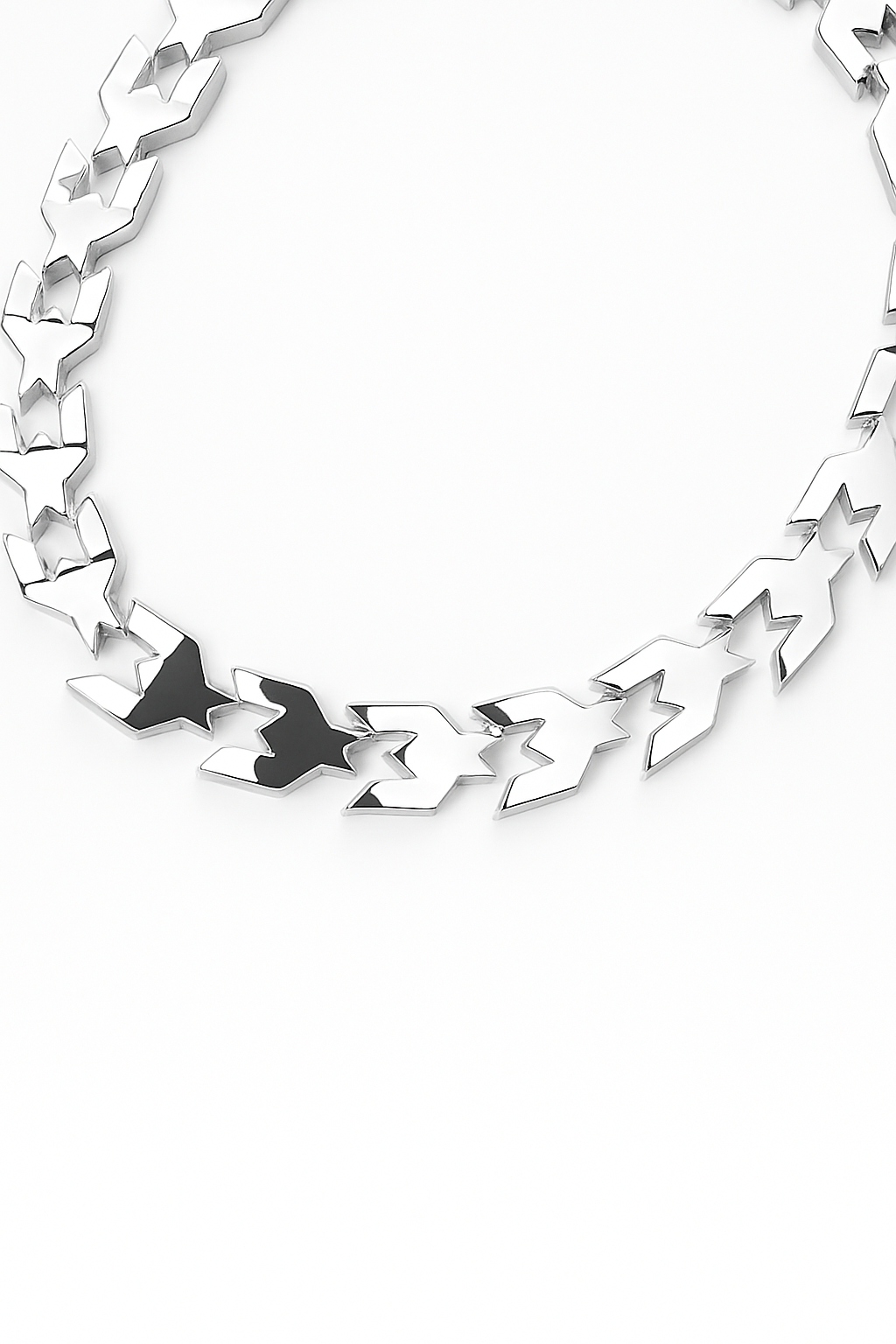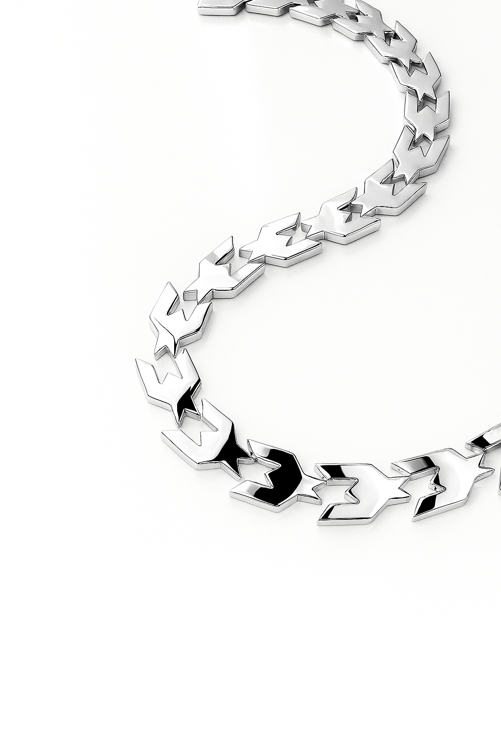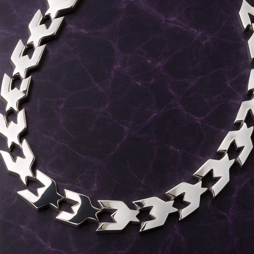 This statement necklace features our signature houndstooth charm in a continuous, unbroken chain — bold, architectural, and unmistakably ours. Cast in solid sterling silver and finished by hand, it’s available in either a high-polish mirror shine or a softly textured satin brush. Designed to stand on its own or layer with intention, it brings presence to any look.
