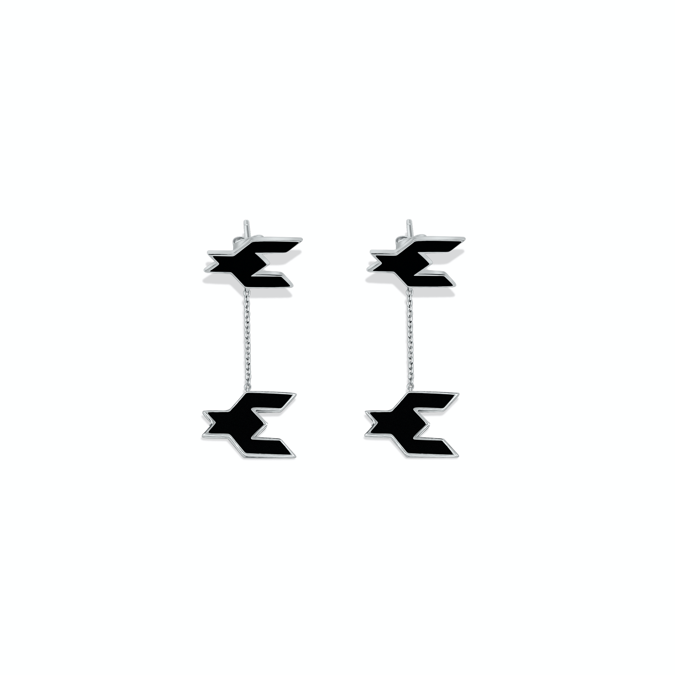 A signature reimagined in its most versatile form. These earrings feature our iconic houndstooth motif, rendered in deep black enamel against solid sterling silver. Understated in scale yet bold in presence, they bring striking contrast and everyday wearability — a refined statement from any angle.